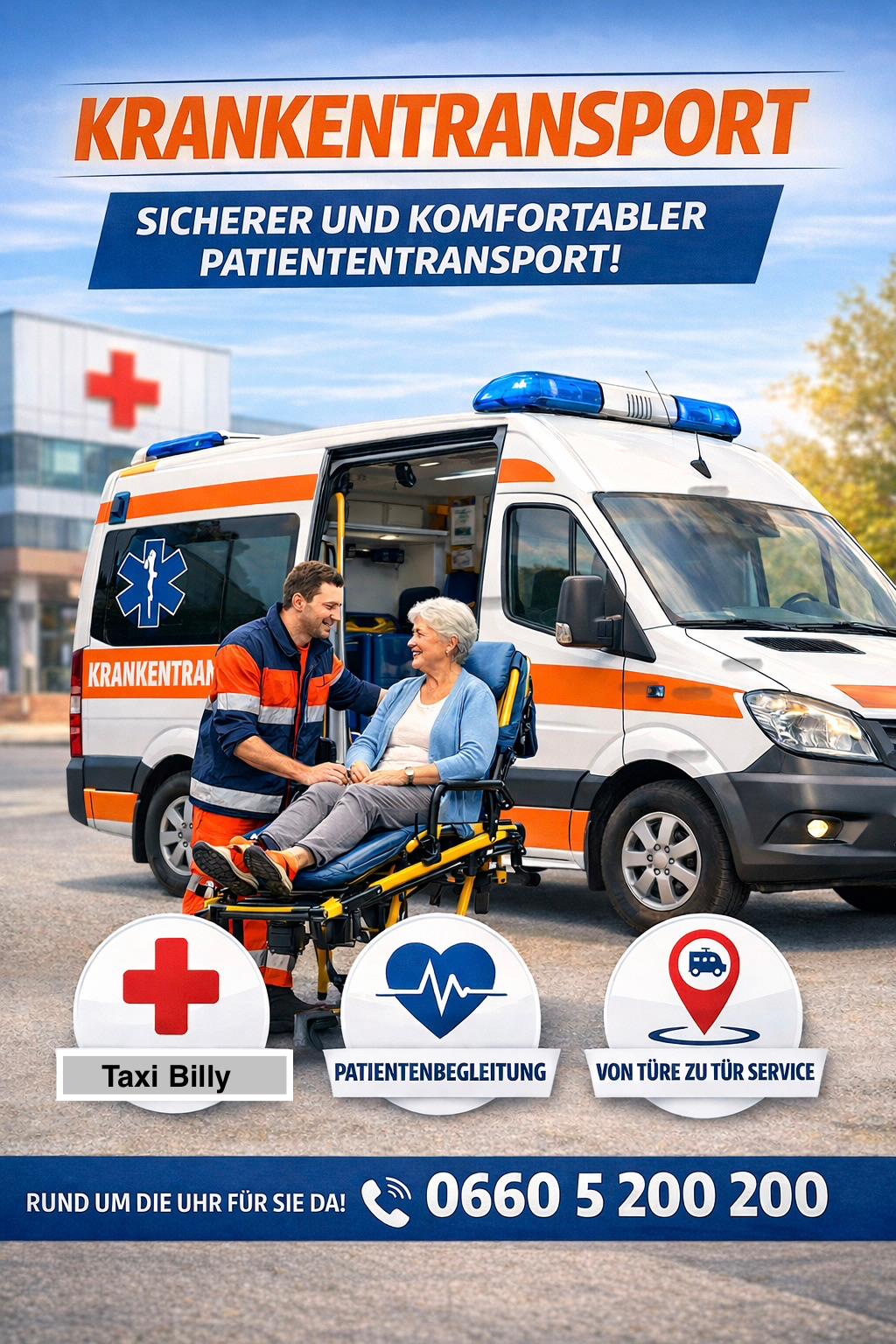 Krankentransport (alle Kassen). Wir bringen Sie sicher und pünktlich zu Arzt und Krankenhaus. "Sicherer Krankentransport…